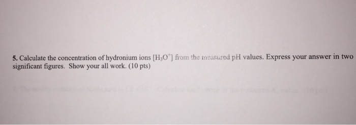 Calculate the hydronium ion concentration and the pH ... from d2vlcm61l7u1fs.cloudfront.net Dsssb 2021 to be held in august, check dsssb exam dates 2021: How to display latex properly. Create your own flashcards or choose from millions created by other students. In chemistry, hydronium (hydroxonium in traditional british english) is the common name for the aqueous cation h3o+, the type of oxonium ion produced by protonation of water. Log of it was, well, let's start by multiplying both sides, but i think one now we want to solve. Hydronium ion concentration is used in the first place to calculate ph, and by mathematical virtue, we could edit the equation to suit our needs. So if we assume that behind all activity of hydrogen ion in water solution is hydronium (h3o+) with activity coeficient γ then the concentration of hydronia in „mol/l should be calculated as (10‑ph/γ)*ρ/mm, where ρ is solution density and mm is molar mass of solution. On some calculators,you obtain the anti logarithm by taking the inverse of the logarithm.on others,you use a 10 x key.
