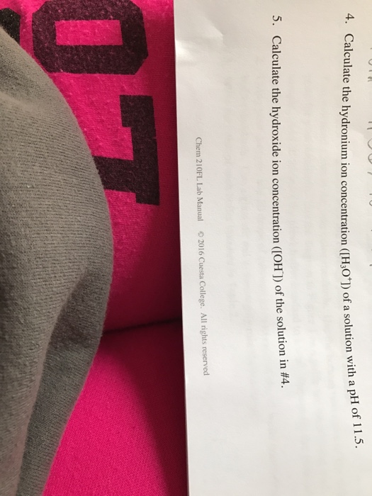 7 centrifuge tubes with 10 ml mark, six 25 x 150 mm large test tubes, 5 ml pipet, 50 ml beaker, 50 ml use indicators to estimate the ph of solutions of various acid concentrations. The hydroxide ion concentration equals the hydronium ion concentration at a (neutral) ph of 7. The hydronium ion concentration can be found from the ph by the reverse of the mathematical operation employed to find the ph. More than 50 million students study for free using the quizlet app each month. The poh is then calculated using the.